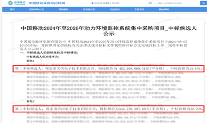 天河電子中標中國移動2024-2026動環監控集采項目